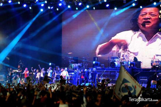 Para macan tua yang digawangi Iwan Fals, Setiawan Djody dan Sawung Jabo di Stadion Gelora Bung Karno, Jakarta, Jumat (30/12) malam. Kantata kembali membawakan lagu-lagu legendarisnya setelah 21 tahun vakum dari dunia musik.